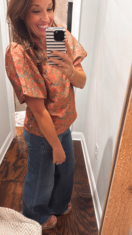 Rust jacquard print top